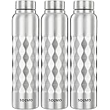 Amazon Brand – Solimo Stainless Steel Cubix Water Bottles Set of 3, 1L Each | Rust-Resistant, Shatter-Proof, Spill-Proof | Food Grade Steel | Office, School, Travel | Dishwasher Safe (Silver)